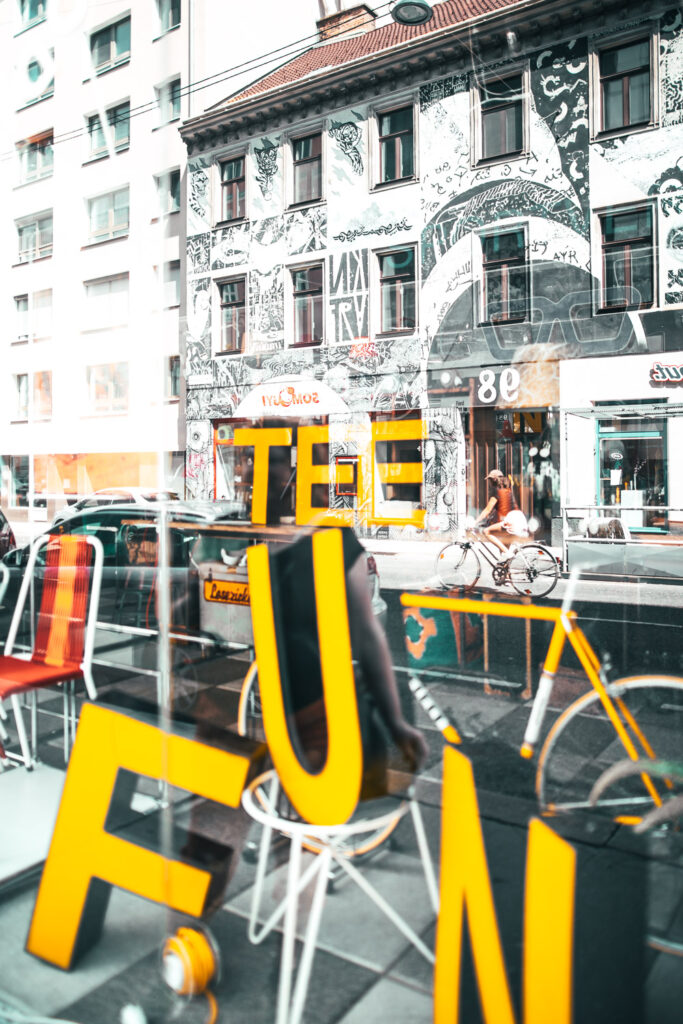 The dark side of Hipsterville. Unterwegs im 7. Bezirk eröffnen sich ganz fotogene Details abseits der vielen Trend-Lokale. Baustellen, Reflexionen, leere Geschäftslokale, die ich ja ganz besonders gerne fotografiere. Natürlich klingt „the dark side of Hipsterville“ ein wenig übertrieben, ganz klar. Für mich machen aber diese Details den Charme aus.